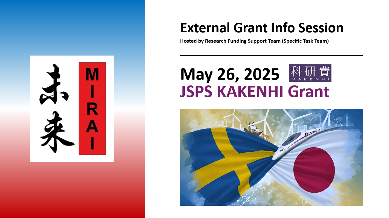STT Research Funding Support plans further events to support MIRAI researchers, project managers, and other key stakeholders engaged in building sustainable research partnerships between Sweden and Japan.