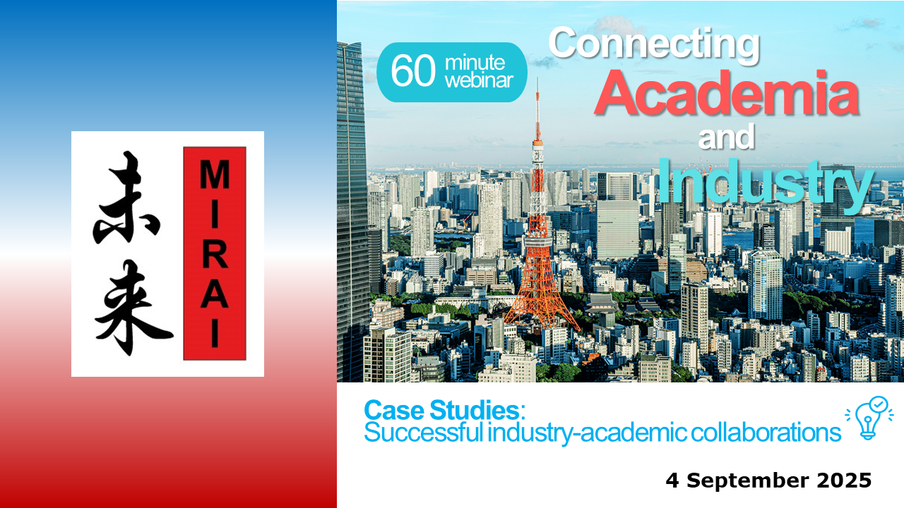 The webinar recording will be available on the MIRAI official YouTube channel for a limited two-week period. Don’t miss this opportunity to explore cutting-edge collaboration models and future-oriented research.