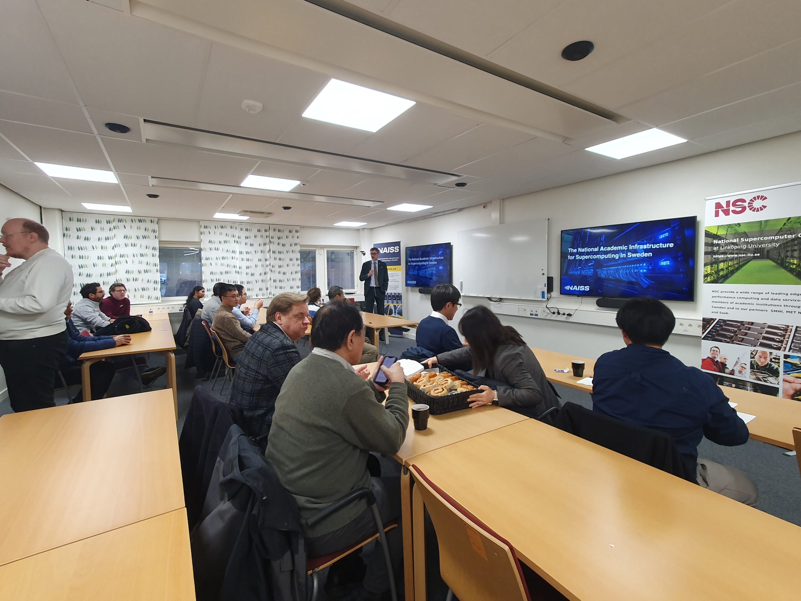 The NSC visit showcased how high-performance computing accelerates materials research. NSC is operated by NAISS (National Academic Infrastructure for Supercomputing in Sweden), hosted by Linköping University, and funded by the Wallenberg Foundation. Participants were welcomed by Björn Alling, Deputy Director of NAISS.